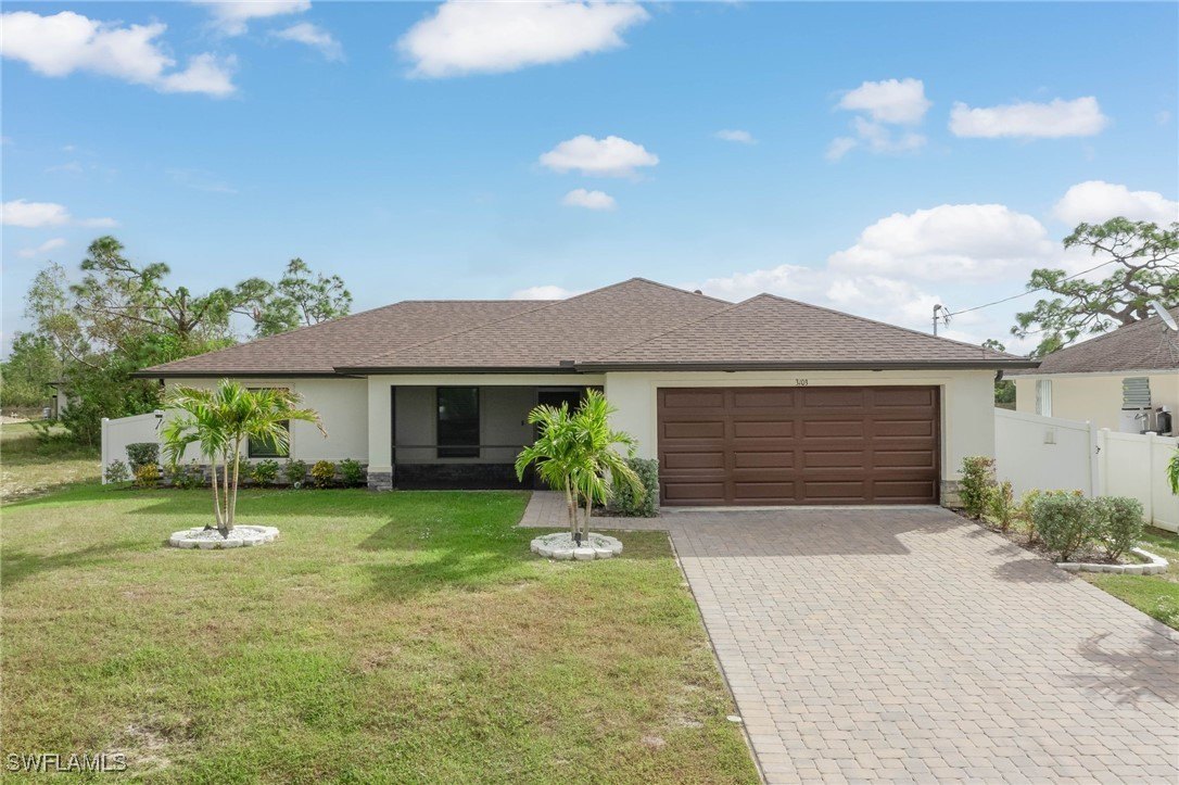 WHY WAIT FOR NEW CONSTRUCTION WHEN YOU CAN HAVE A 2022 HOME FENCED WITH A SCREENED-IN POOL!!! Immaculately maintained and exuding the charm of a brand-new build, this stunning home offers the perfect blend of modern elegance and functional design. Featuring 3 spacious bedrooms, 2 beautifully appointed bathrooms, and a 2-car garage, the thoughtful split floor plan provides both privacy and convenience, with generous closet space throughout. Step inside to discover a bright, open living space that seamlessly flows into the gourmet kitchen, complete with stainless steel appliances, sleek granite countertops, and ample cabinetry—ideal for both everyday living and entertaining. The indoor laundry room adds ease to your daily routine, while the inviting, screened-in, heated pool and sun deck offer a private oasis for relaxation and enjoyment. Whether you're lounging by the pool or hosting a BBQ on the under-roof patio, you'll appreciate the perfect indoor-outdoor living this home offers. The fully fenced backyard, with its pristine white vinyl privacy fence, is perfect for outdoor activities and offers maximum privacy. An irrigation system keeps your yard lush and green, and the extended, screened-in front porch provides a charming spot to unwind and enjoy the surroundings. Located in the desirable FEMA flood zone X, this home does not require flood insurance by your lender, making it even more appealing. Move-in ready and brimming with luxurious features, this home truly has it all! Call or Text Steven Chase at 239-287-0539 for more information.